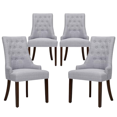COLAMY Wingback 软垫餐椅 4 件套,织物侧餐厅椅子带簇绒纽扣,客厅椅子适用于家庭厨房 - 浅灰色