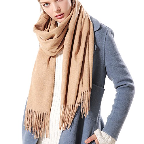 OHAYOMI 女式厚实超大羊绒披肩围巾柔软冬季保暖毛毯, 浅驼色, L