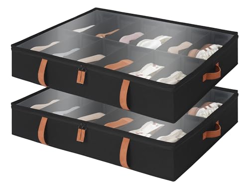 StorageWorks 衣柜鞋收纳箱,2 件装超厚织物鞋存储容器,带底部支撑和可调节隔板,最多可容纳 24 双,黑色