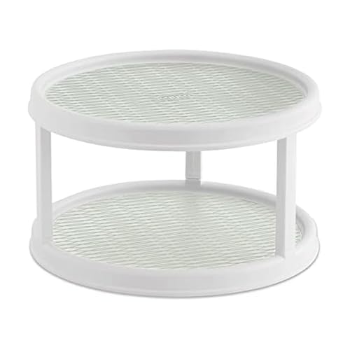 Copco 防滑 2 层食品柜 Lazy Susan 转盘,12 英寸 - 整理厨房、浴室、家庭办公室、洗衣房、车库、工艺室 - 厨房转盘和食品储藏室收纳盒(白色/粉色)