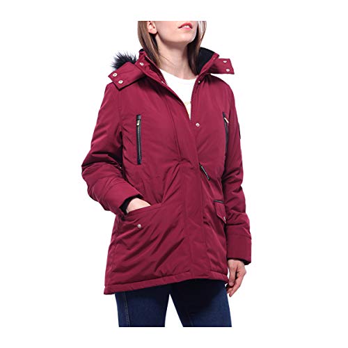 Rokka&Rolla 女士加厚保暖派克大衣冬季外套,带可拆卸人造毛皮兜帽, 红酒, 中号
