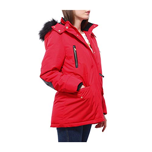 Rokka&Rolla 女士加厚保暖派克大衣冬季外套,带可拆卸人造毛皮兜帽, 新鲜红, 小号