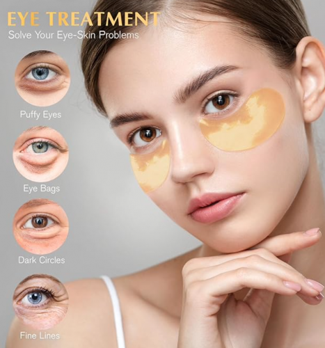 这款 24K 金色清凉眼部凝胶贴片不会滑落,有效消除眼部细纹、黑眼圈和浮肿。