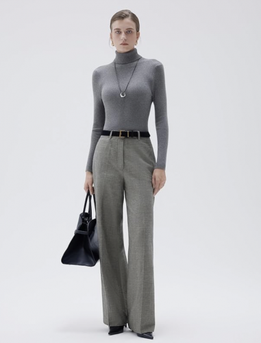 Turtle Necks 羊绒高领套头毛衣采用40% 羊绒,40% 抗起球腈纶,20% 粘胶氨纶,超柔软,舒适、高弹力面料。