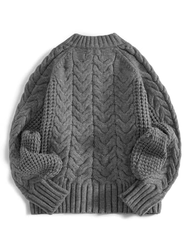 Aelfric Eden 宽松开衫毛衣女式超大粗线针织前开襟长袖圆领时尚服装, 灰色, XS