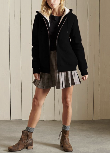 多色选。这款女式羊羔绒衬里面料柔软亲肤,舒适保暖拉链连帽衫,采用加厚抓绒内衬