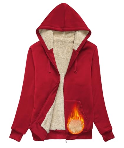 GEEK Lighting 女式拉链连帽衫羊毛内衬夹克羊羔绒内衬运动衫保暖冬季时尚外套, 酒红色, M