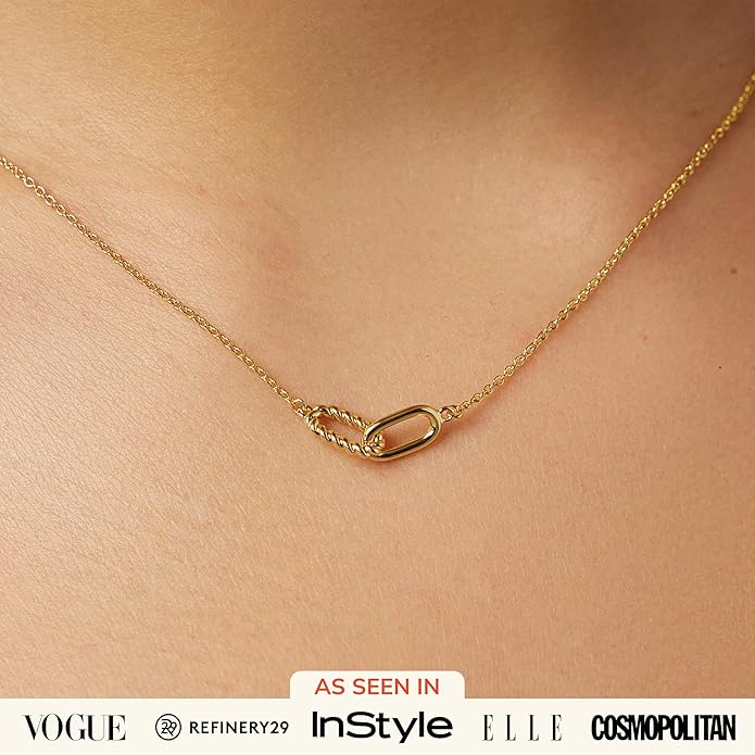 这款项链采用 14k 金镀金,抛光表面,配有醒目的链式吊坠和引人注目的扭曲细节。完采用高质量低过敏性材料制成,适合日常佩戴。其轻巧的设计确保...