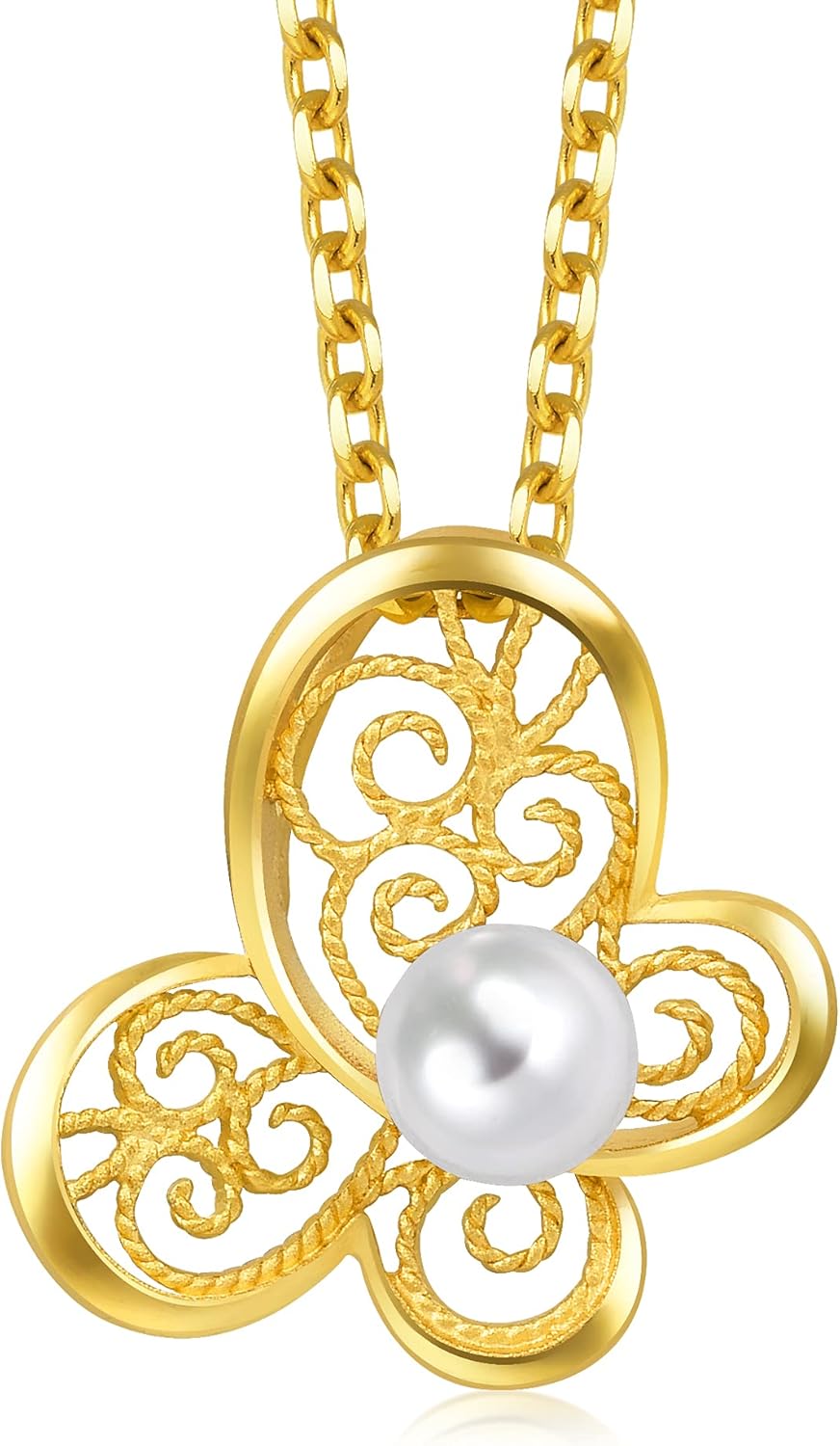 周生生 999.9 24K足金镂空蝴蝶珍珠母贝吊坠