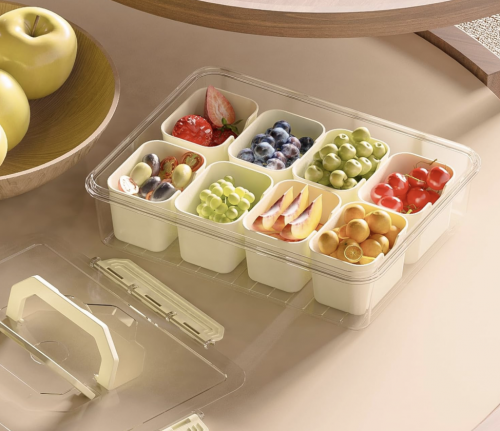 多分区设计,零食分类清晰不串味,带盖防尘保鲜更安心。