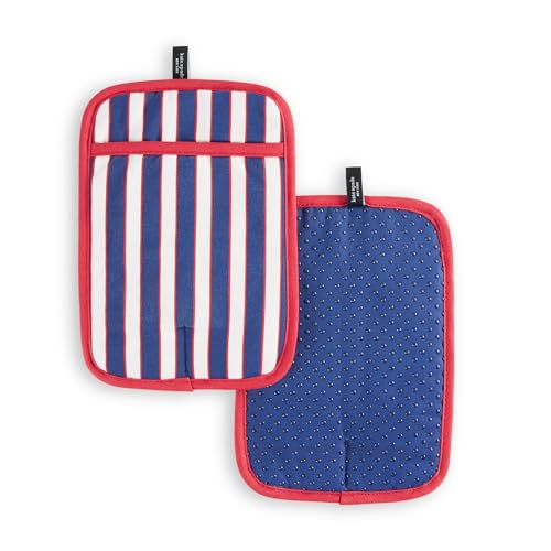 这款时尚的Kate Spade New York 植物条纹锅架组共有 2 件,每个 7 英寸 x 8 英寸,100% 编织棉帆布,印花颜料和透明硅胶印花,可防滑抓握耐热,挂环便于存放。...
