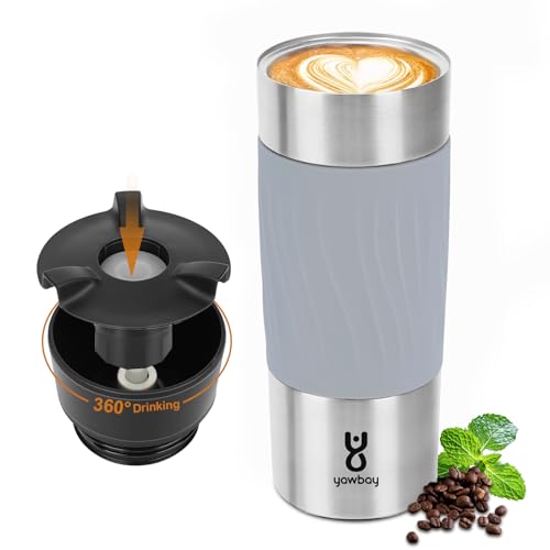 轻松使用一个手指按下Yawbay旅行咖啡杯顶部的按钮,您可以从各个方向喝水,360°旅行咖啡杯使单手饮用变得轻而易举,无需担心在忙着驾驶或其他事情时寻...