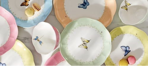 清新可爱~美国第一古瓷Lenox 蝴蝶草甸系列甜点盘4 件套