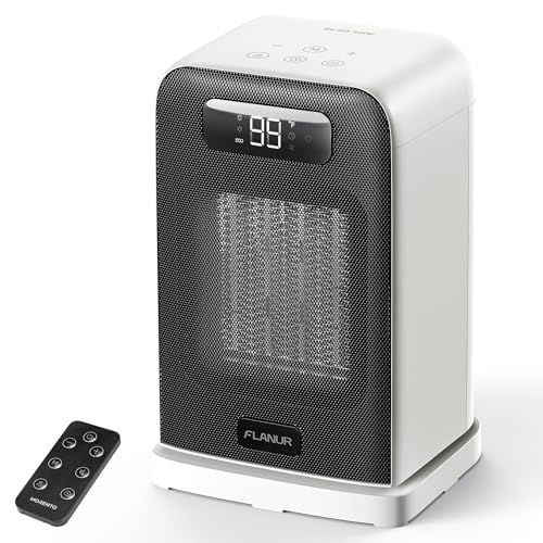 FLANUR 室内空间取暖器 1500W 小型台式加热器 2合1 带遥控器、恒温器、LED 显示屏、过热和倾倒保护,12小时定时器,70° 摆动加热器适用于办公室(白色,1件装)