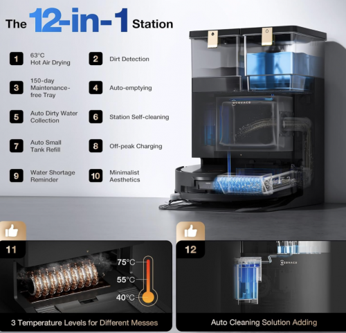 ECOVACS 机器人吸尘器 DEEBOT X5 PRO Omni 带一体机站,12.800Pa,ZeroTangle,TruEdge 自适应边缘拖地,150°F 热水拖把清洗,AINA 2.0 智能导航