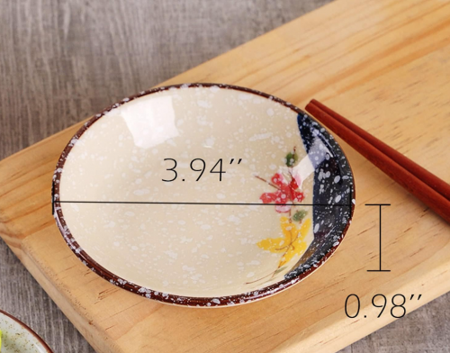 传统日式风格,共5 款逼真复古风图案。 花朵、鸟类、可爱的鱼等。尺寸约3.94 英寸 x 1 英寸(直径 x 高)