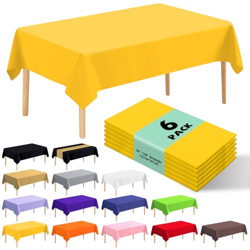 6 件装高级一次性塑料桌布 54 x 108 英寸(约 137.2 x 274.3 厘米)派对桌布一次性适用于 6 至 8 英尺(约 1.8 米)桌子室内或室外派对生日婚礼圣诞节周年纪念自助餐桌(黄色)
