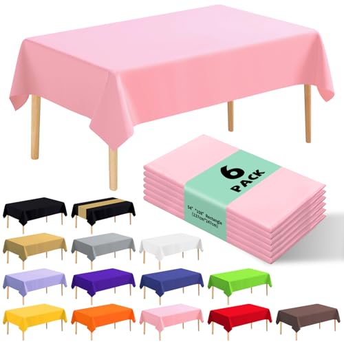 6 件装高级一次性塑料桌布 54 x 108 英寸(约 137.2 x 274.3 厘米)派对桌布一次性适用于 6 至 8 英尺(约 1.8 米)桌子室内或室外派对生日婚礼圣诞节周年纪念自助餐桌(紫色)