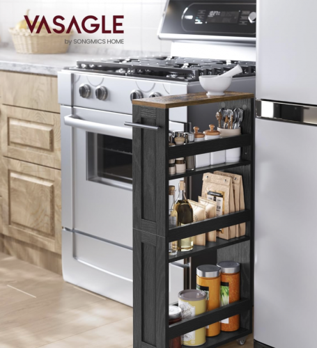 【小空间适用】宽5.9英寸,可放入橱柜、冰箱、洗衣机或烘干机旁边的狭小空间,提供方便使用的存储空间。