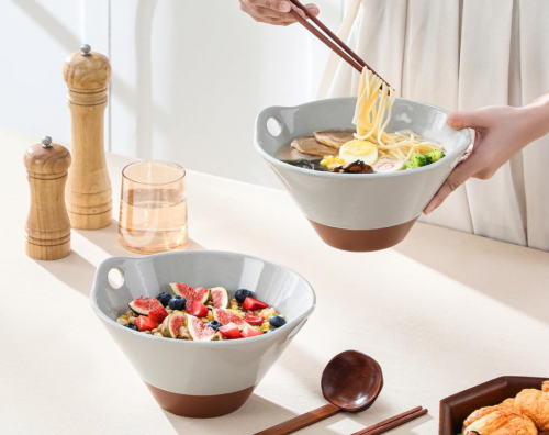 折扣码BAQTXJJG。42oz大碗搭配木筷与加宽木勺,可容纳汤面、米饭、沙拉等,独特手柄设计可作筷架,贴心实用。