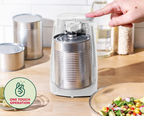 配有 60 瓦电机和耐用的不锈钢切割刀片,可轻松处理各种尺寸的罐头,从小金枪鱼罐到大