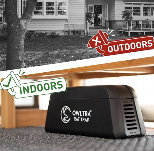 OWLTRA 室内电动捕鼠器,即时消除啮齿动物灭鼠器,带宠物安全触发器,黑色,小号