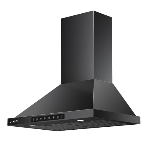 VIKIO HOME 黑色壁挂式抽油烟机 30 英寸(约 76.2 厘米)不锈钢厨房抽油烟机 980 CFM 管道/无管抽油烟机 带 3 速排气扇、灯光、手势感应和触摸控制开关面板