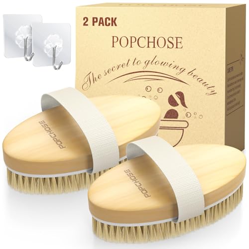 POPCHOSE 干刷身体刷,天然猪鬃干性皮肤去角质刷身体磨砂,适用于完美皮肤,脂肪团治疗,淋巴排水和血液循环改善