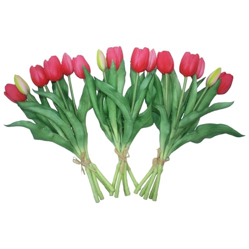 Moderspace 15 件人造郁金香花,仿真郁金香触感,人造乳胶花束,适用于派对婚礼家居房间装饰(玫瑰红)