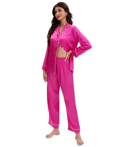 上衣:长袖睡衣,缺口领,纽扣睡衣衬衫和一个胸袋设计。轻盈亲肤的女士丝缎睡衣。非常适合睡觉、休闲穿着或整天在家或院子里闲逛。