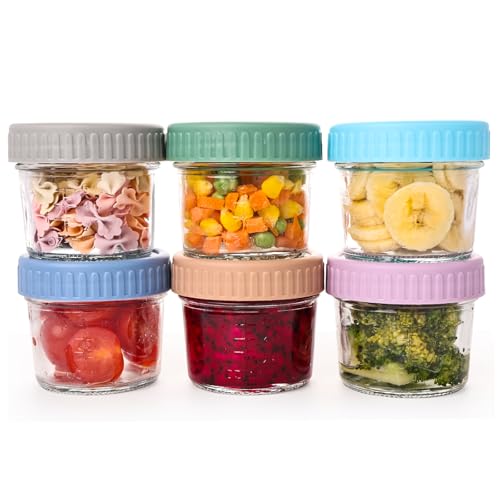 YUNCANG 6 件装玻璃食品储存罐 4 盎司(约 113.4 克)玻璃食品罐带盖,适用于微波炉、洗碗机和冰箱