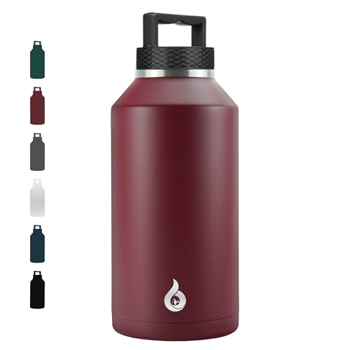 BJPKPK 半加仑保温水瓶,可用洗碗机清洗 64 盎司(约 1.8 升)带手柄的水瓶,防漏,不含 BPA 的水壶,大号不锈钢保温,砖红色