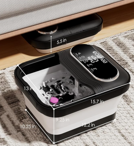 可折叠足部浸泡器可折叠至仅5.5英寸厚,因此可以轻松存放在小空间。