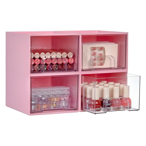 Vtopmart 4 件装小型可堆叠储物抽屉,浴室化妆收纳盒,梳妆台塑料储物箱,水槽下,厨房橱柜,食品储藏室,家庭整理(粉色)