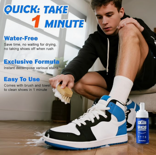 独特免水泡沫配方,清洁后可立即穿着,无需等待干燥。高效去污成分能快速分解油渍、灰尘与饮料痕迹,让鞋子焕然如新。配备柔软刷毛与擦拭毛巾,适用于白鞋、运动鞋、休闲鞋等多种材质与颜色。
