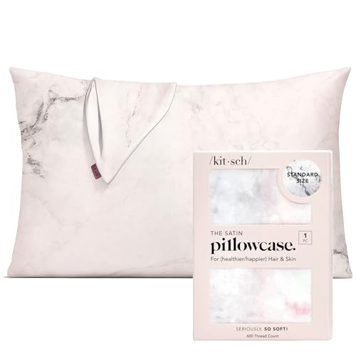 Kitsch 缎面枕套带拉链,适合头发和皮肤,比丝绸枕套更柔软,大号,不起皱,光滑凉爽的缎面枕套,标准尺寸 48.26 厘米 x 66.04 厘米,大理石