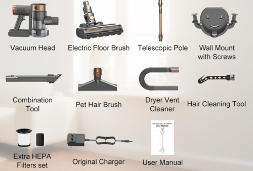 [ 10 合 1 多功能吸尘器 ] NuYupo DHC100 无绳杆真空吸尘器,重量不超过 5 磅,轻松操作和处理,不会对背部造成压力。 配有组合刷、宠物梳、干燥器排气清洁器,可在几秒钟内变成手持式真空吸尘器。 现在窗帘和蜘蛛网不再遥不可及。 沙发和烘干机通风口的缝隙中的绒毛和碎屑不会隐藏。