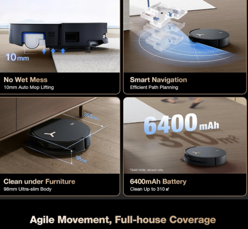 ECOVACS DEEBOT X9 PRO Omni 机器人真空拖把,16,600Pa 爆炸吸力,OZMO 滚筒即时自洗拖地,ZeroTangle 3.0,三重提升系统,AI 智能导航,免提全方位站