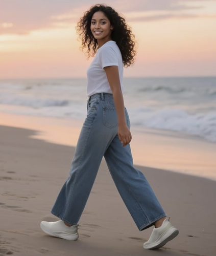 时尚流畅:这款女士一脚蹬运动鞋拥有流畅的鞋身和活力撞色设计,为每一步增添活力。