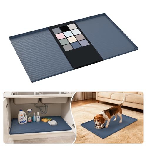 URMONA 防水硅胶水槽下垫 86.36 厘米 x 55.88 厘米搁板衬垫适用于厨房和浴室、橱柜和柜台保护器、储物和整理器、猫砂垫、宠物猫小狗必需品(深灰色)