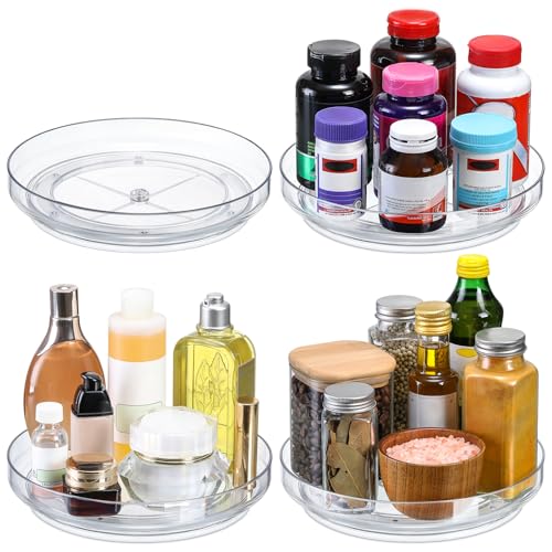 $22.98 $29.99 4 件装,10 英寸(约 25.4 厘米)透明防滑懒人苏珊收纳架 - 适用于厨房橱柜、食品储藏柜和储存、冰箱、浴室壁橱、梳妆台台面化妆整理、调料架