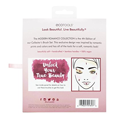 Ecotools 的刷具是平价又好用,这款米白色的刷柄,配上粉色浪漫的花朵图样,五支有底妆、修容、腮红、眼影刷,基本具备日常妆容所需的刷具,刷毛柔软好上妆,除了好看外也非常实用。