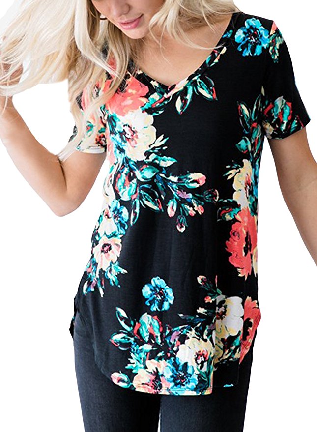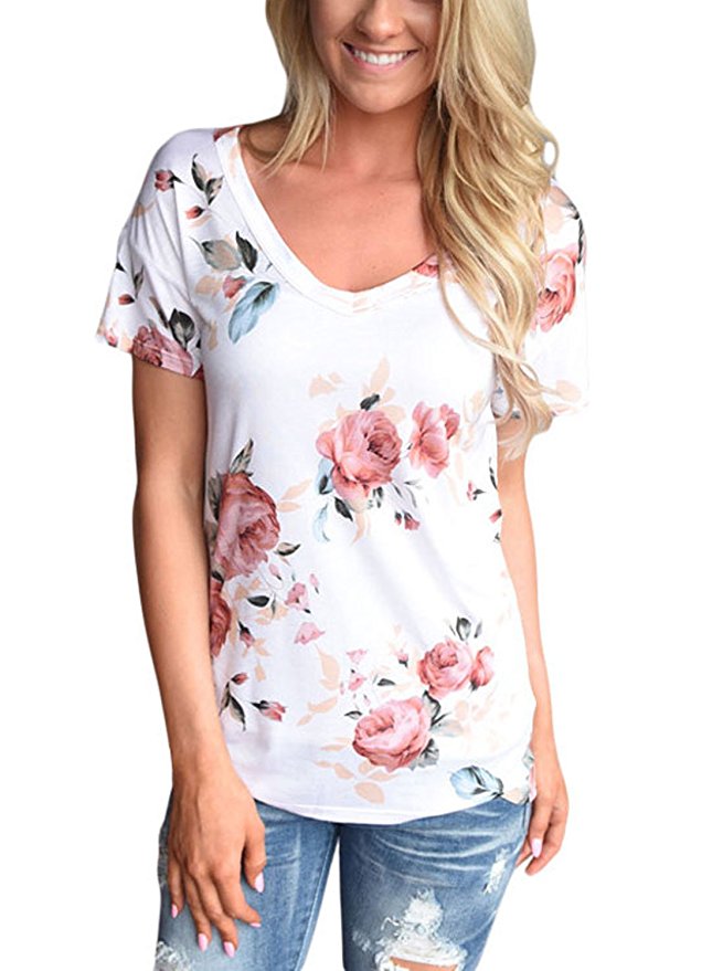亚马逊上这款舒适女士V领印花短袖休闲T恤只要$12.99!