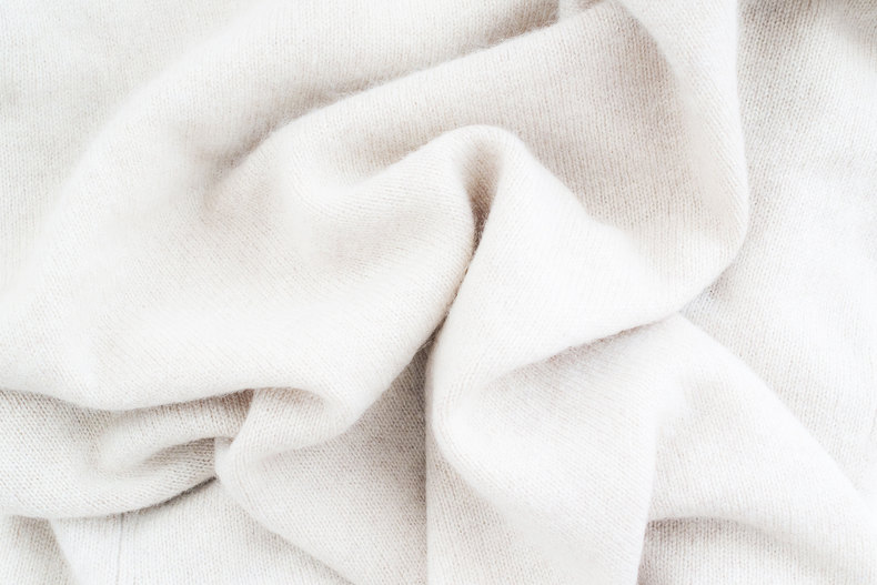 有着“软黄金”之称的羊绒衫,指的是山羊的绒毛,贴近山羊皮肤的一层绒毛,秋冬长出来,春天的时候就会褪去。羊绒极细,而且中间是空心的,就像钢管一样。绝对是针织界中顶级的奢侈品。一只绒山羊每年产的无毛绒(除去杂质后的净绒)大概5 0 克- 8 0 克,而平均每五只山羊的绒才够做一件普通羊绒衫。