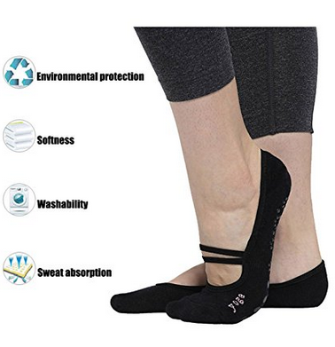 专门瑜伽练习跳舞等运动设计!这款高品质YOGA棉袜采用95%透气棉和5%氨纶,US 5-10尺寸,包包括3双粉色、黑色、紫色瑜伽袜,贴脚防滑。