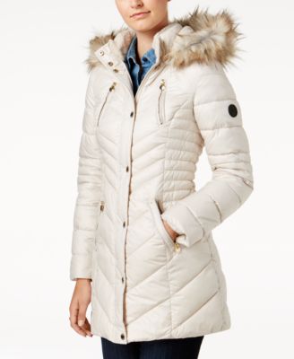 Kenneth Cole Faux-Fur-Trim Down Chevron Puffer Coat