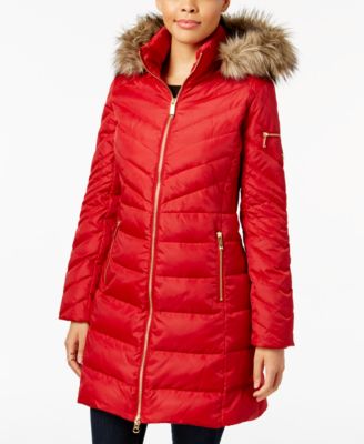 Michael Kors Faux-Fur-Trim Down Puffer Coat