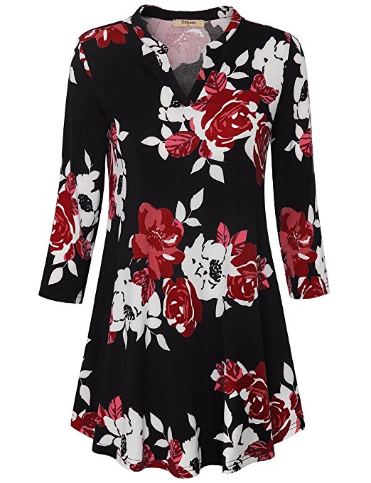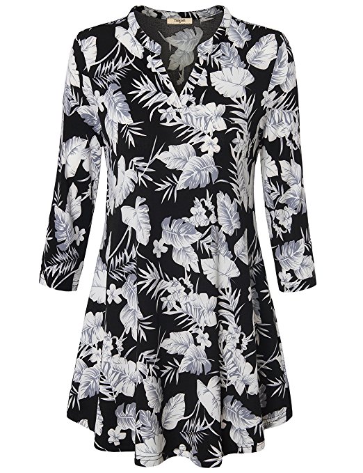 Zattcas Womens Floral Printed Tunic Shirts 3/4 Roll Sleeve Notch Neck Tunic Top