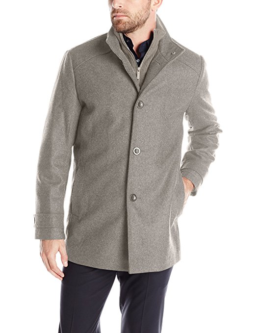 Kenneth Cole New York Men's Wool Blend Car Coat with Polyblend Bib