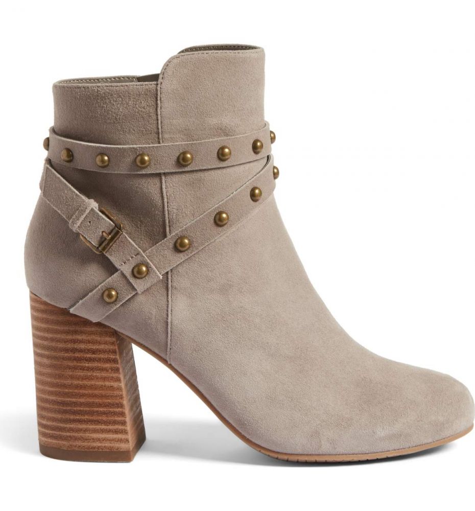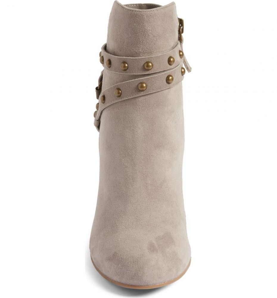 Kolo Flared圆领钉饰,简约麂皮短靴配有环绕式脚踝带,西方风格的设计,最新款式。